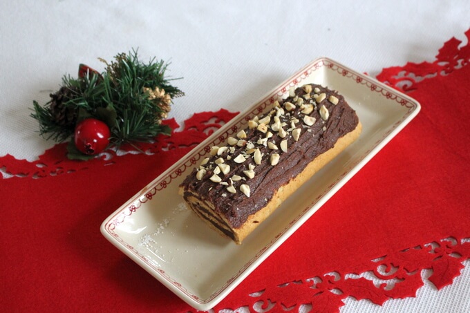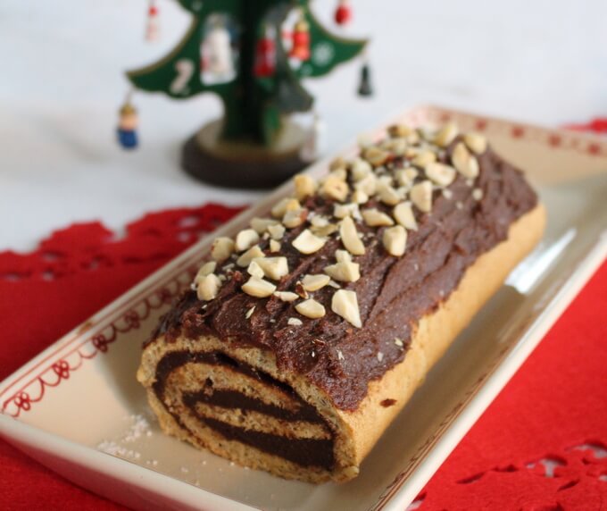 As you might already know I love a good culture mix. So today I present to you a recipe of a traditional French Christmas dessert – Christmas Log (Buche de Noel), but with an Italian touch. I love hazelnuts but what I love even more is chocolate. And of course Italians created a solution to this dilemma called Gianduia. In this recipe I tried to recreate its creamy chocolaty texture with a hazelnut aftertaste. This recipe has moderate amounts of sugar and is healthier than classic versions of Buche de Noel especially due to its richness from hazelnuts, yet it tastes even better!